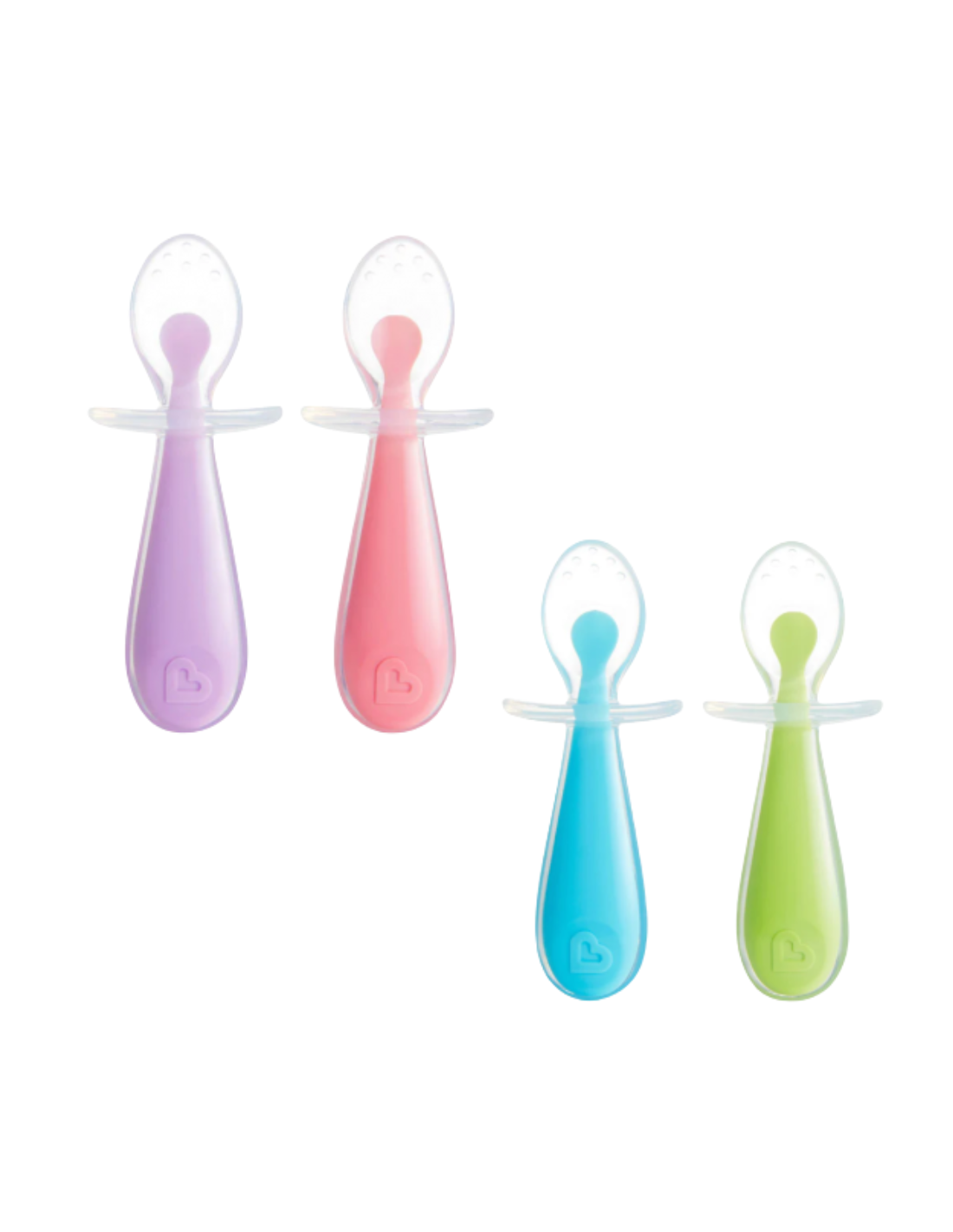 Este pack incluye dos cucharas de silicona con una textura suave y flexible, ideales para proteger las encías sensibles del bebé. Su diseño incorpora un protector antiatragantamiento que también funciona como soporte para evitar que la punta de la cuchara toque superficies contaminadas. Gracias a su mango ergonómico , se adapta al agarre natural del bebé, fomentando su independencia al comer. Además, son aptas para el lavavajillas , libres de BPA y seguras para su uso diario. Recomendadas a partir de los 6 meses.