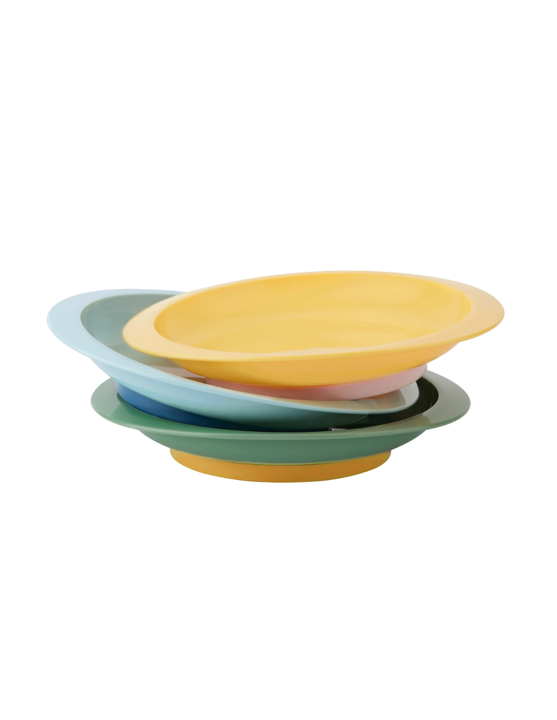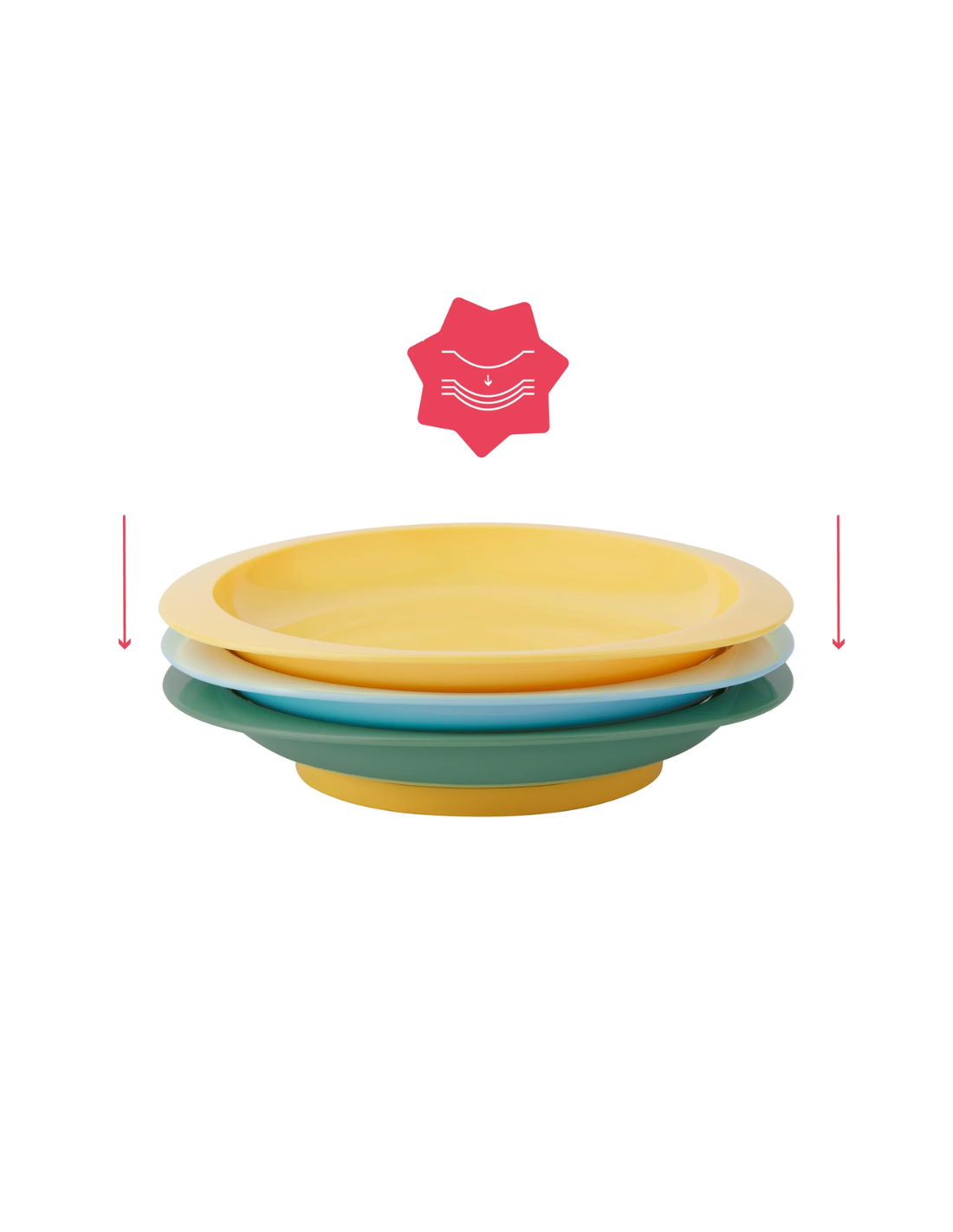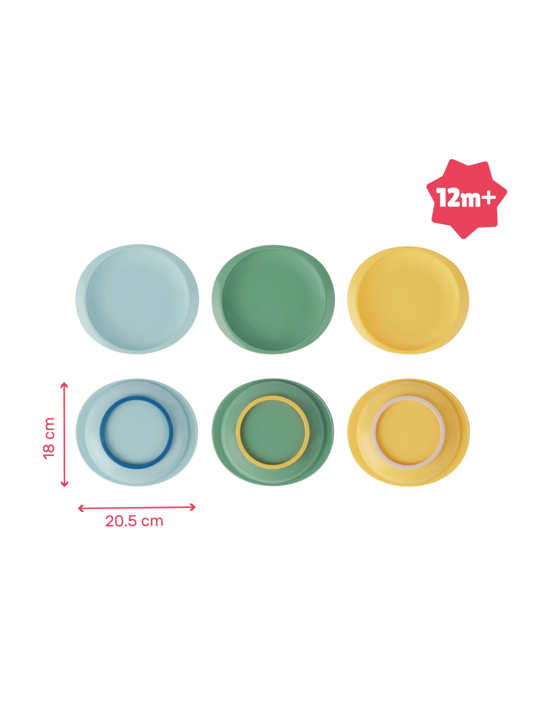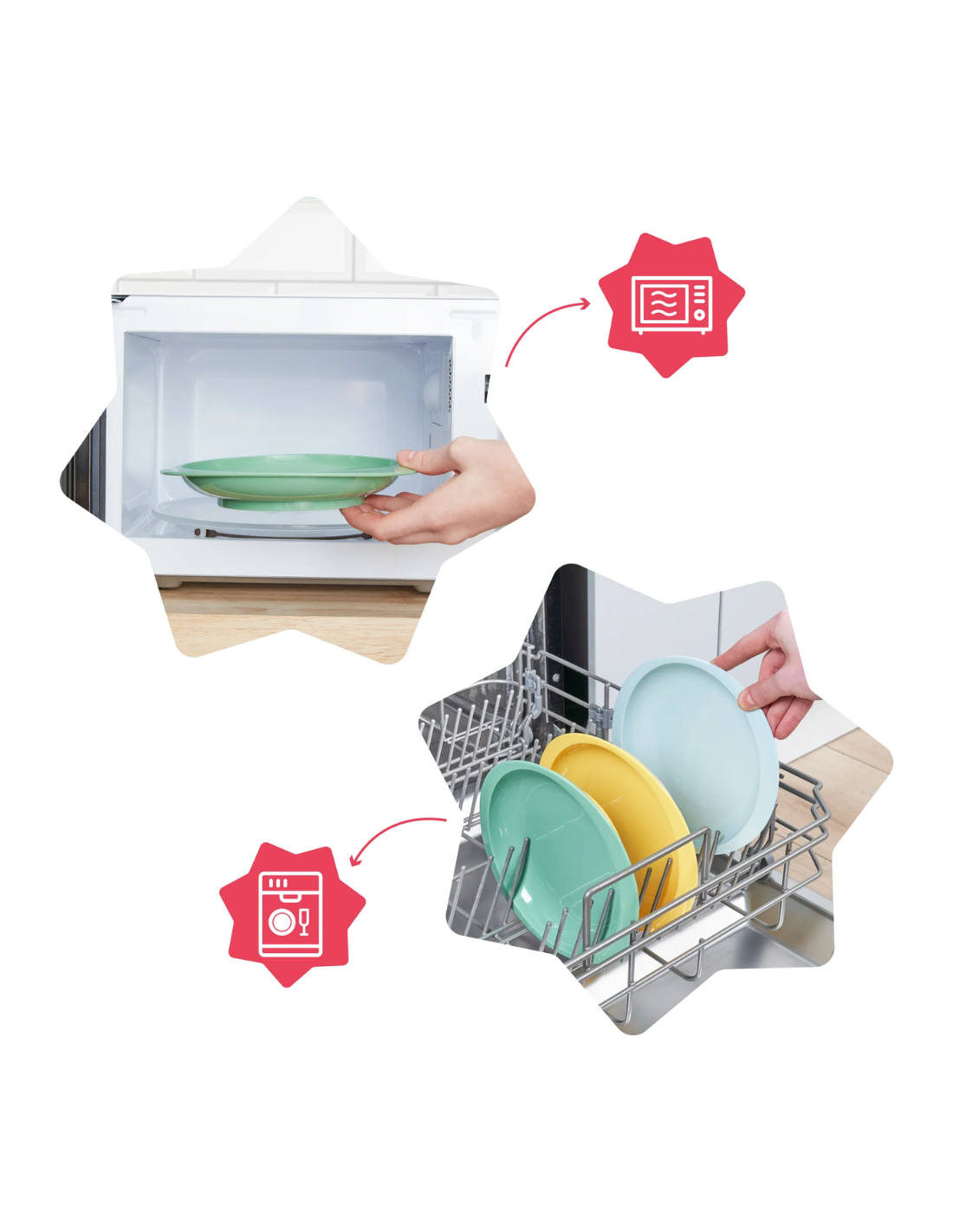 El set de platos Badabulle está fabricado con materiales irrompibles y resistentes a los golpes y caídas, lo que los convierte en una opción segura para el día a día. Son antideslizantes, gracias a su base de silicona, evitando que el plato se mueva en la mesa. Su diseño efecto mate y colores mixtos los hace atractivos para los pequeños. Además, son apilables, lo que facilita su almacenamiento y transporte. Son aptos para lavavajillas, garantizando una limpieza rápida y sin complicaciones.