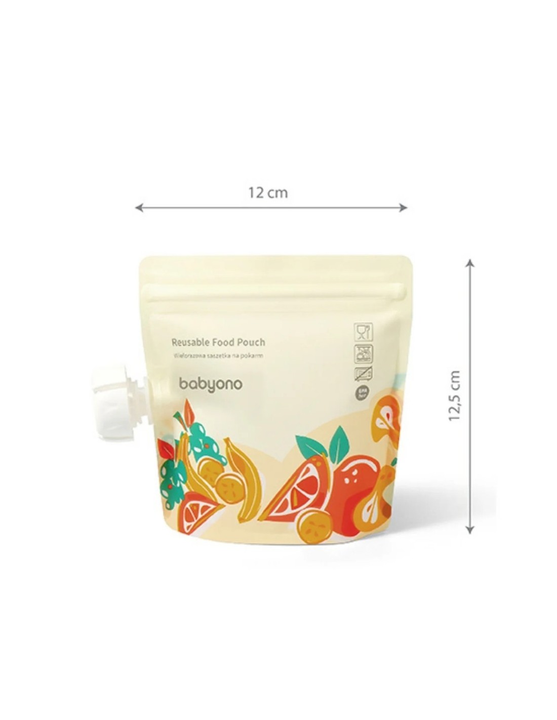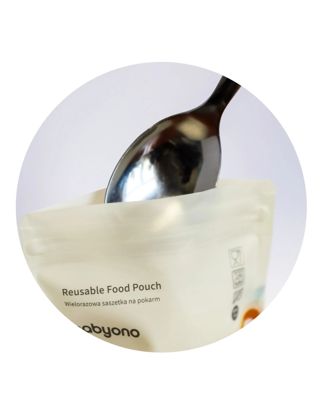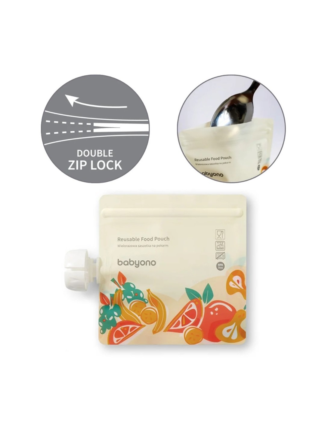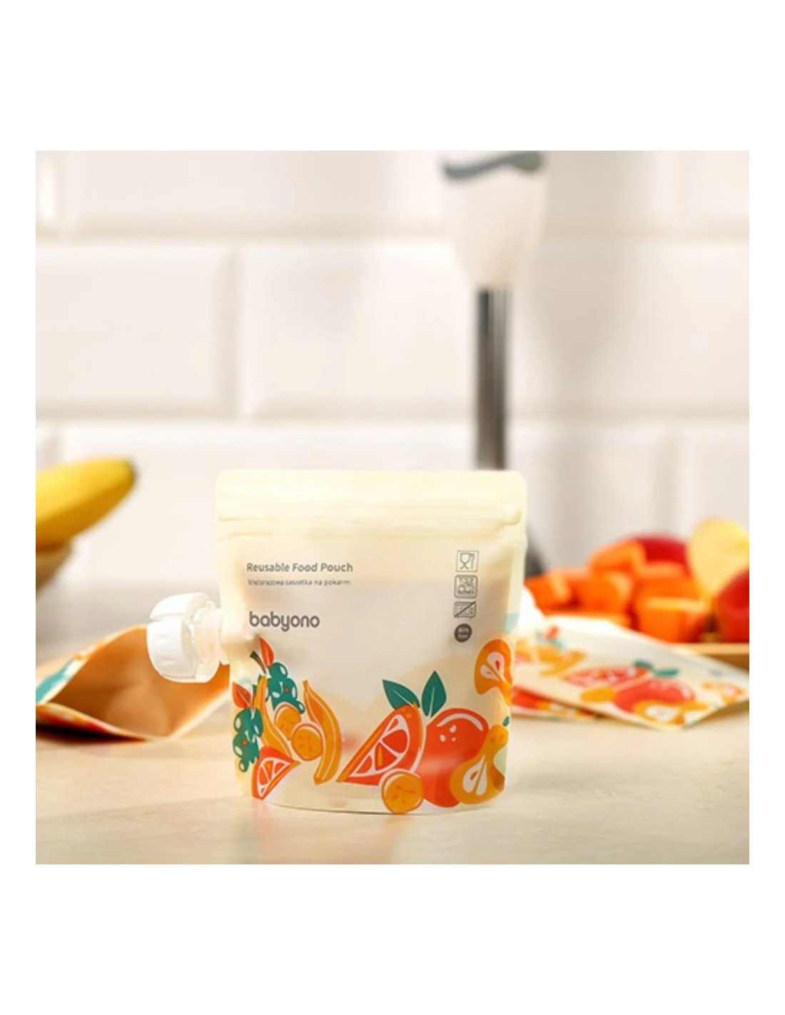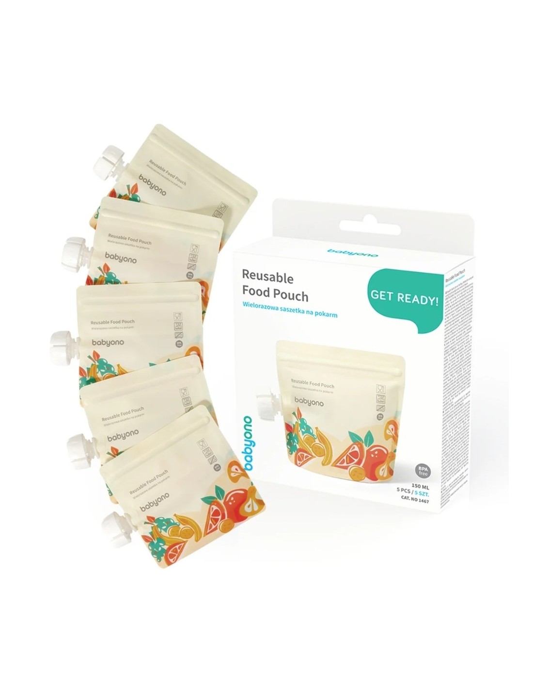 Las bolsitas reutilizables BabyOno de 150 ml son la solución práctica y sostenible para guardar, transportar y servir comidas caseras a tu bebé. Están diseñadas para rellenar con purés, papillas, yogur o batidos, y cuentan con un cierre seguro de doble cremallera que evita fugas. Son reutilizables, fáciles de limpiar y muy resistentes, convirtiéndose en una alternativa ecológica frente a los envases desechables.