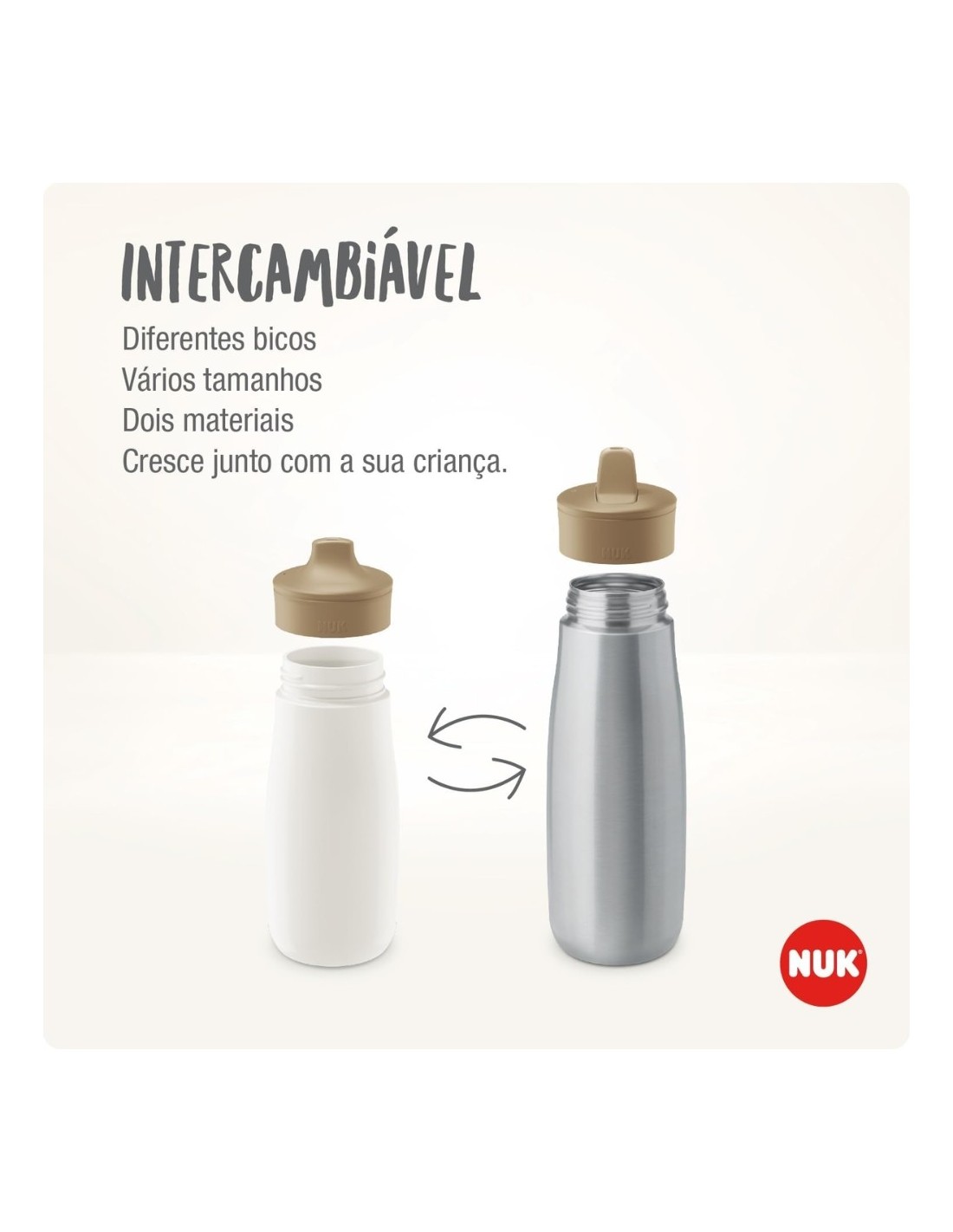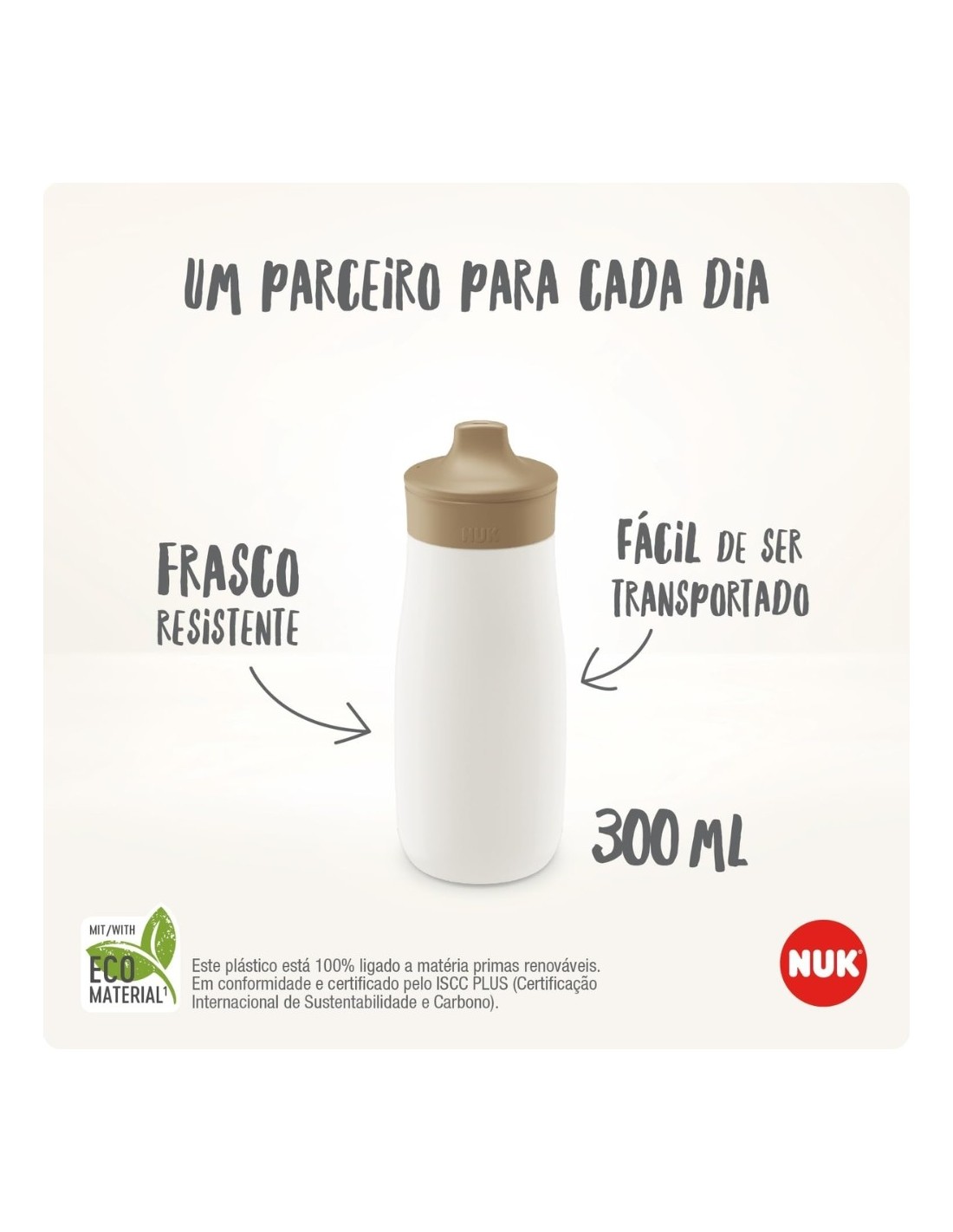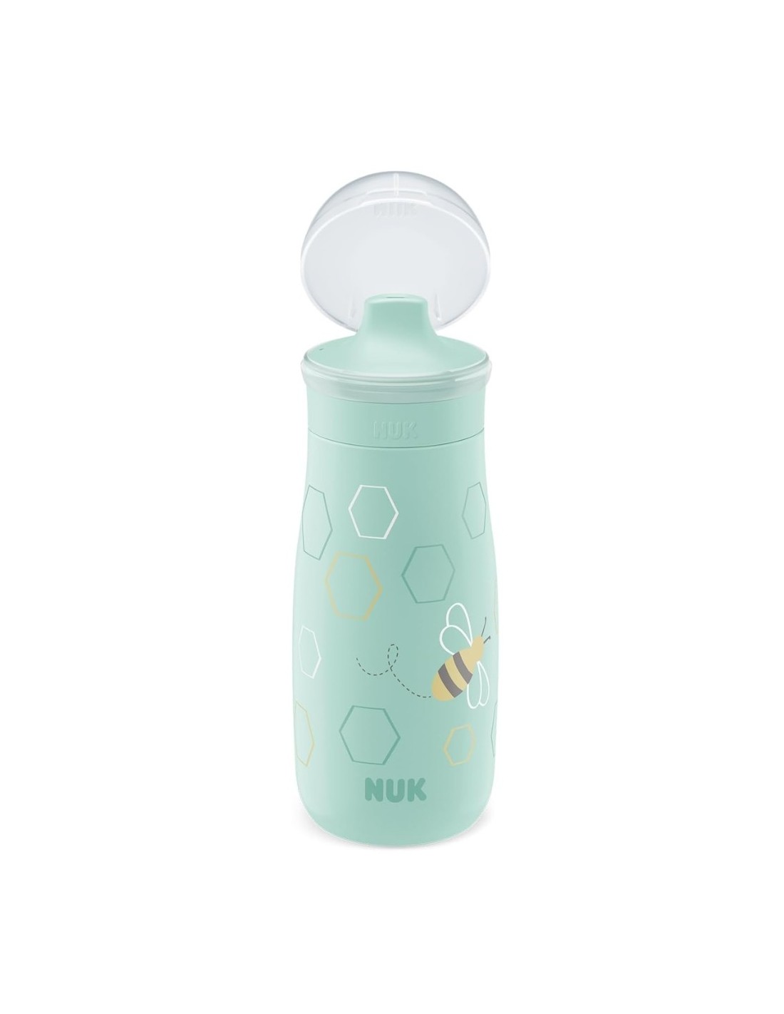Este vaso cuenta con una boquilla resistente a mordiscos, pensada para durar frente a los pequeños dientes afilados del bebé. Su estructura está fabricada con plástico a prueba de roturas, derivado en más de un 80 % de materiales sostenibles, combinando ligereza, durabilidad y conciencia ecológica. El sistema anti-goteo evita derrames y mantiene al bebé y al entorno siempre secos. Además, incluye un tapón protector inteligente que mantiene limpia la boquilla cuando el vaso se transporta fuera de casa. Es apto para lavavajillas, fácil de desmontar y compatible con otras botellas y tapones NUK Mini-Me, lo que facilita la limpieza y el uso diario.