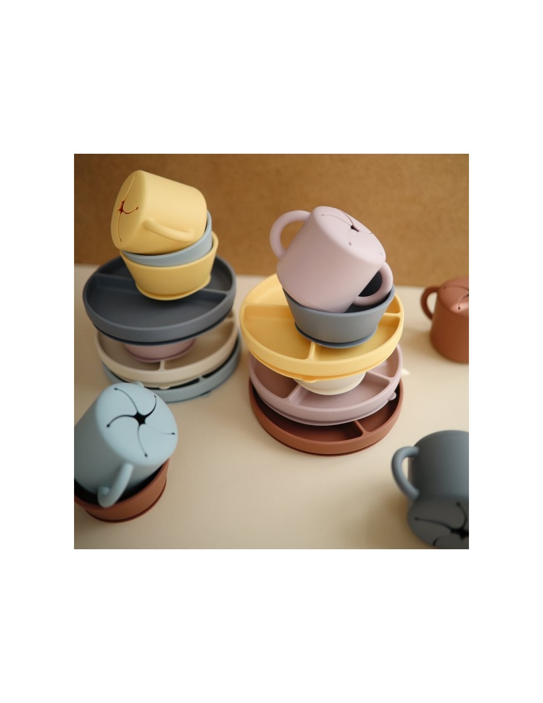 - Plato y taza de silicona/plástico: Reutilizar siempre que sea posible. Al final de su vida útil, gestionar según normativa local.