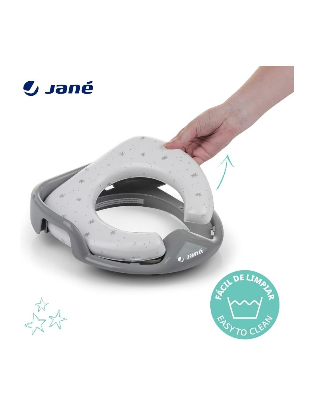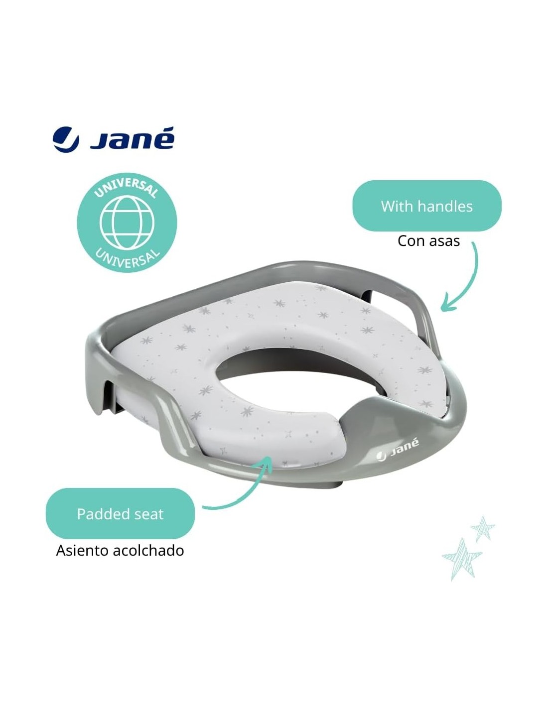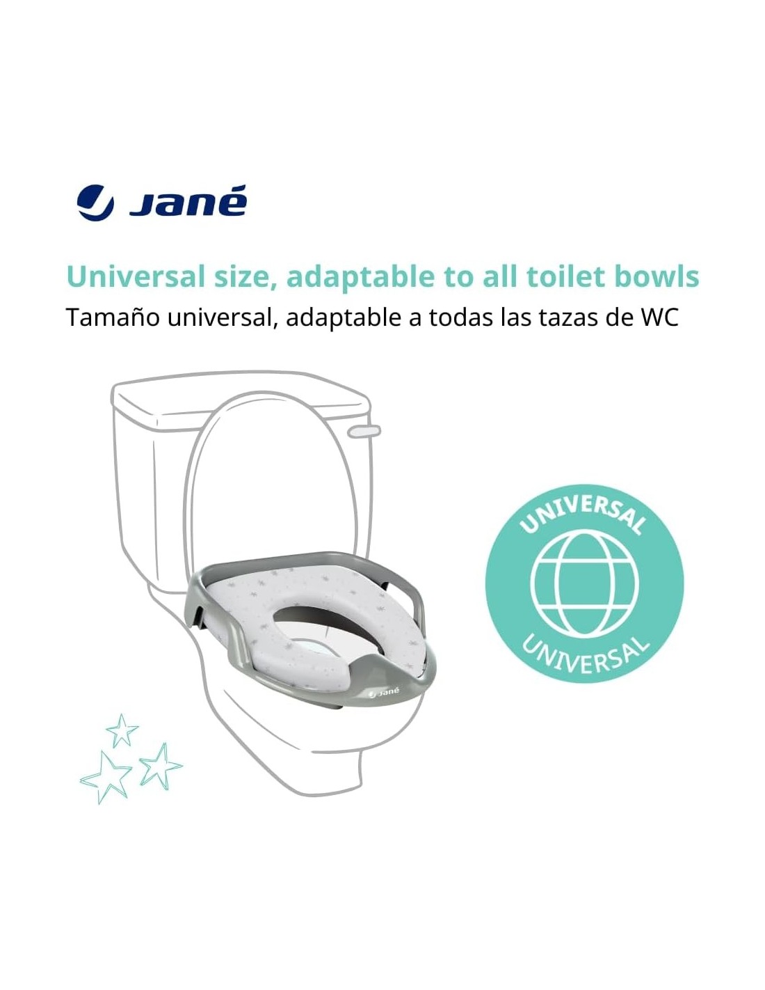 El adaptador blando para el inodoro de Jané está diseñado para brindar seguridad y confianza a los pequeños en su proceso de aprendizaje. Su estructura se ajusta a la mayoría de los inodoros estándar, permitiendo una transición cómoda del orinal al váter de los adultos sin necesidad de cambios o adaptaciones adicionales.