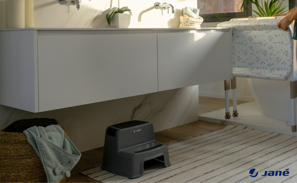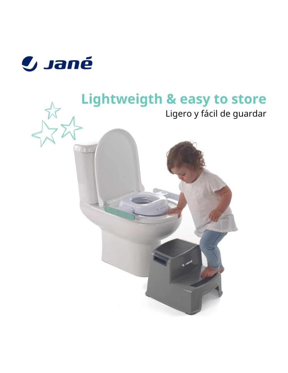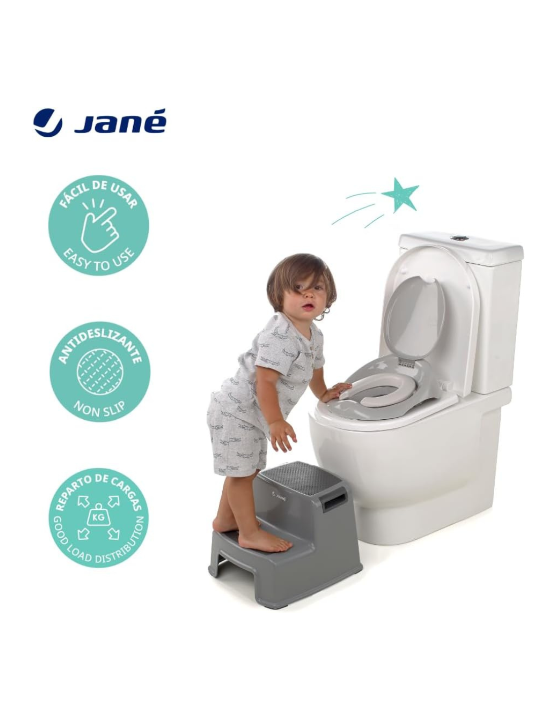 El taburete asiento con dos peldaños de Jané es un producto diseñado específicamente para fomentar el aprendizaje y la autonomía de los niños pequeños, facilitando que puedan alcanzar el lavabo para lavarse las manos o que puedan utilizar el váter de forma independiente durante la transición del orinal. Con un diseño seguro y práctico, este taburete es la herramienta perfecta para que los pequeños ganen confianza en su día a día.