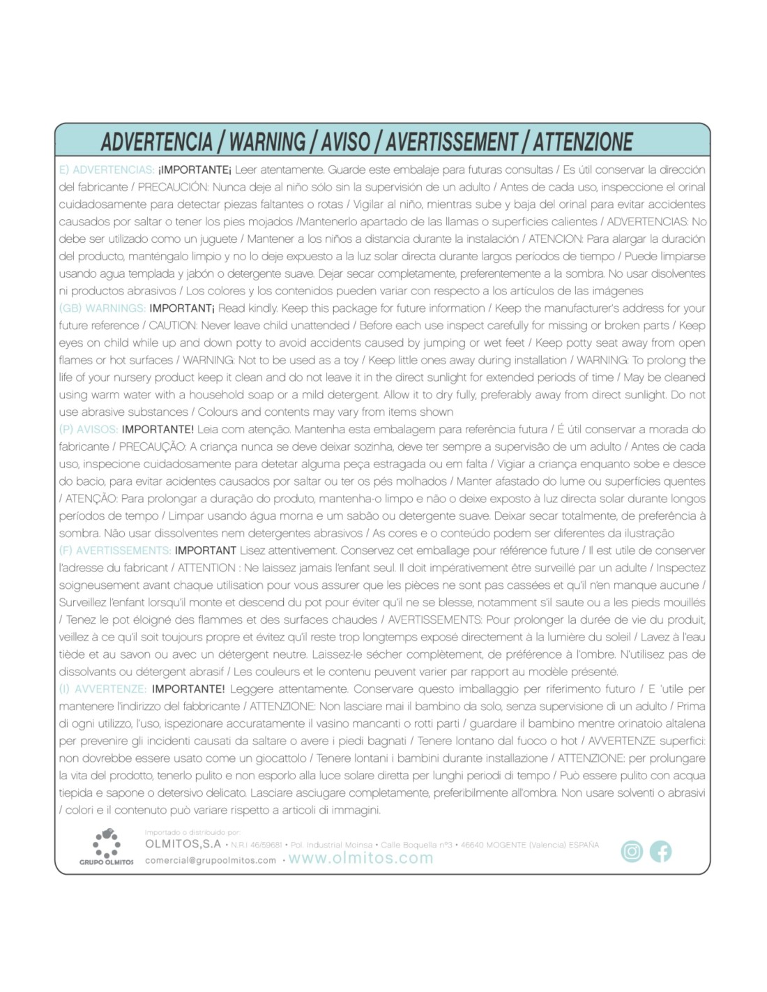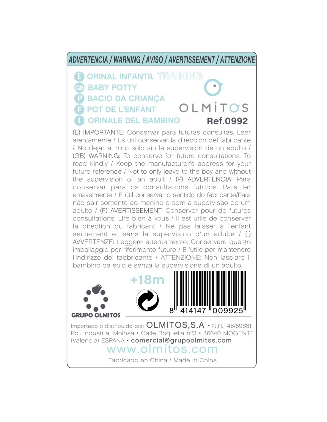 - Cumple con la normativa europea de productos de higiene y aprendizaje infantil.